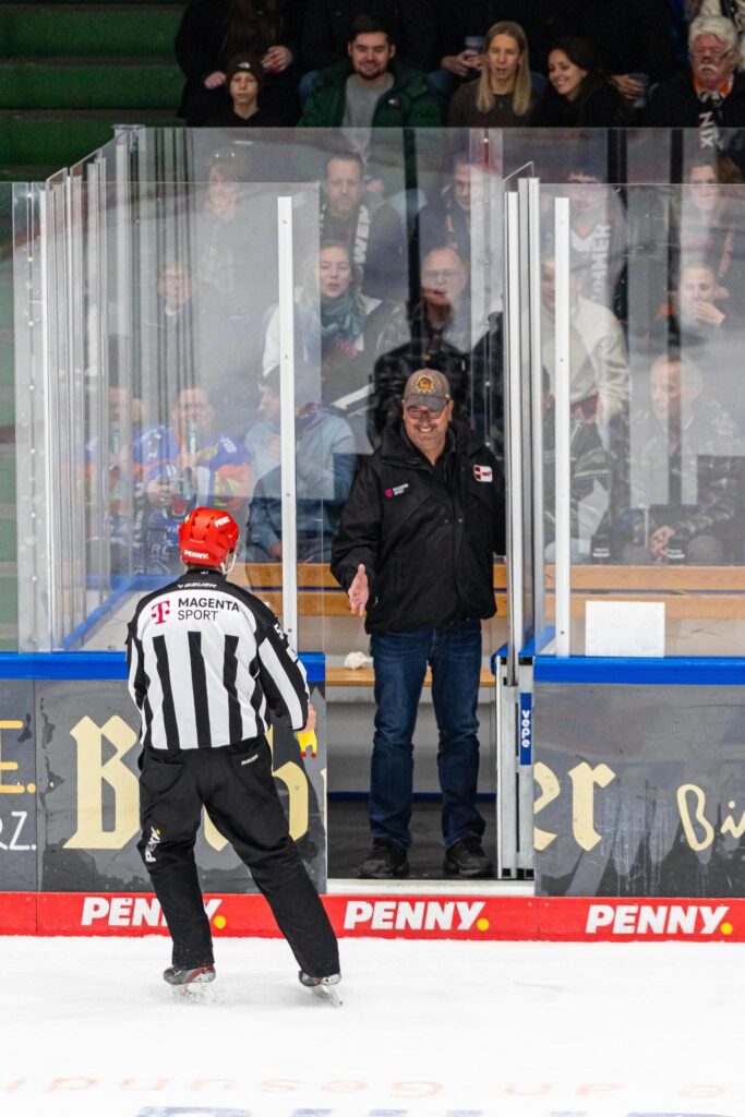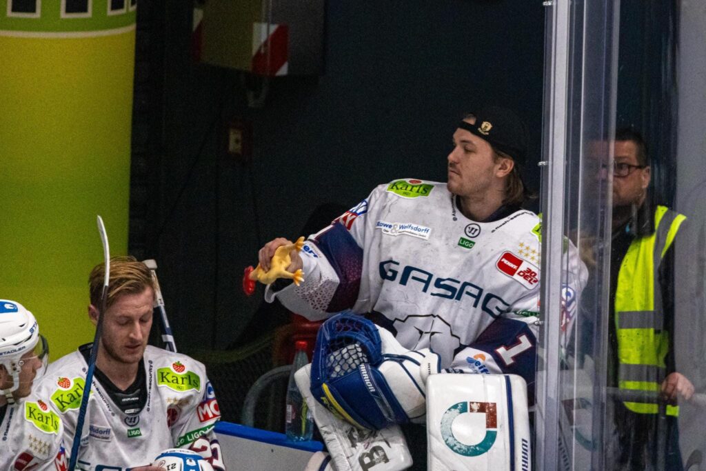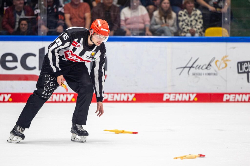 Der 2:0-Sieg war mühsam, das Niveau eher bescheiden. Dennoch kam es in der Partie der Löwen gegen den Herford EV zu einem echten Entertainment-Highlight, dem „Hühnerdiebstahl reloaded“, einer Neuauflage von 1995. Denn als sich im letzten Drittel der Unmut einiger Zuschauer durch Gummihuhnwürfe entlud, machte sich Linesman Benjamin Hoppe einen kleinen Spaß. Bei einem Huhn fuhr er absichtlich 3 Mal vorbei und grinste dabei. Anschließend fuhr er zu einem anderen – besonders schön mit Strickware angezogenem Exemplar, packte sich das Huhn, steckte es sich das in die Hosentasche (wobei der Kopf noch raus guckte) und lieferte nur das erste Huhn ab. Kein Wunder, dass er sich den tausendfachen Sprechchor „Hühnerdieb“ mehr als verdiente. Erst bei der nächsten Unterbrechung lieferte er das entführte Huhn wieder ab.