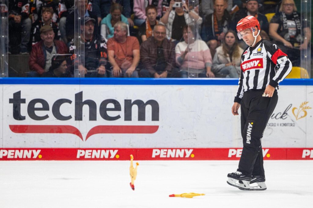 Aus diesem Grund war es für uns höchste Zeit, die Aktion „LET THEM FLY (AGAIN)“ ins Leben zu rufen. Bringt die Gummihühner zurück in unsere Eishalle – wir wollen, dass das Gummihuhn wieder fliegt!